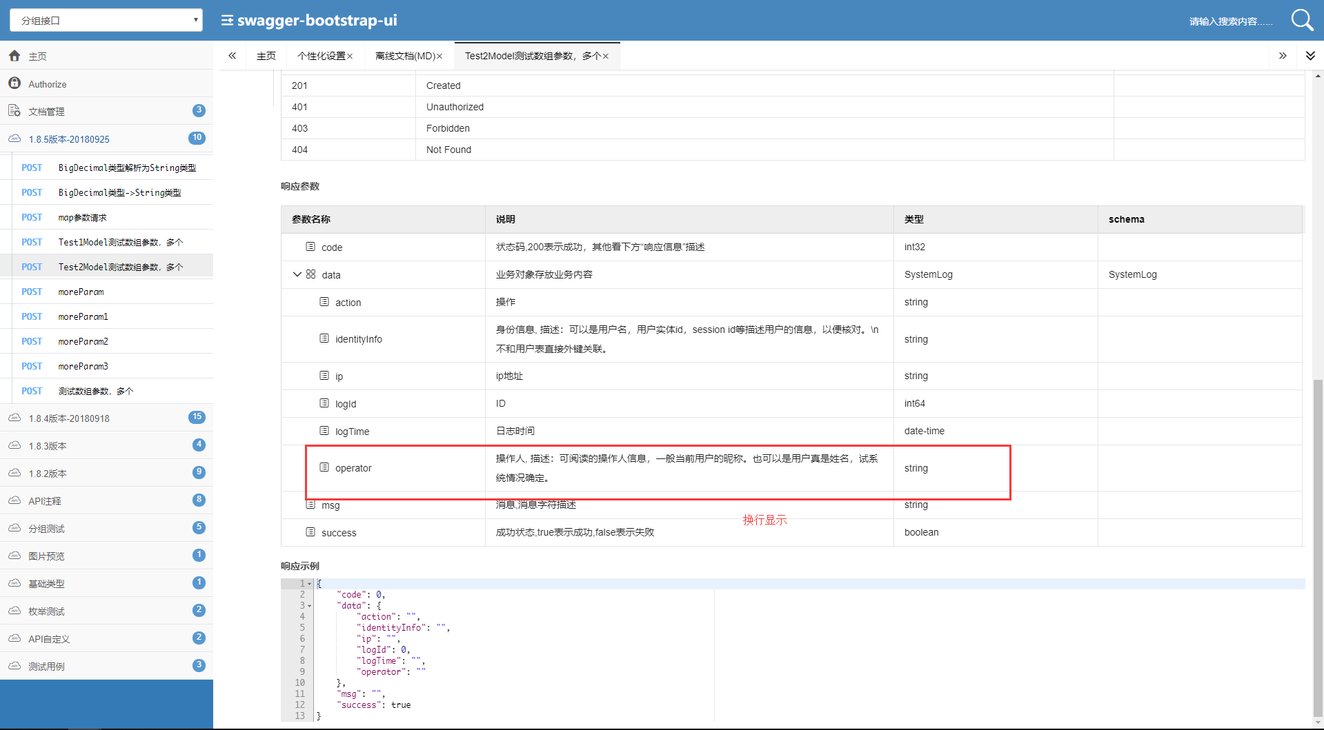13、请求参数及响应参数说明改为多行显示,超出长度不以省略号显示,防止出现浮层一直显示的bug